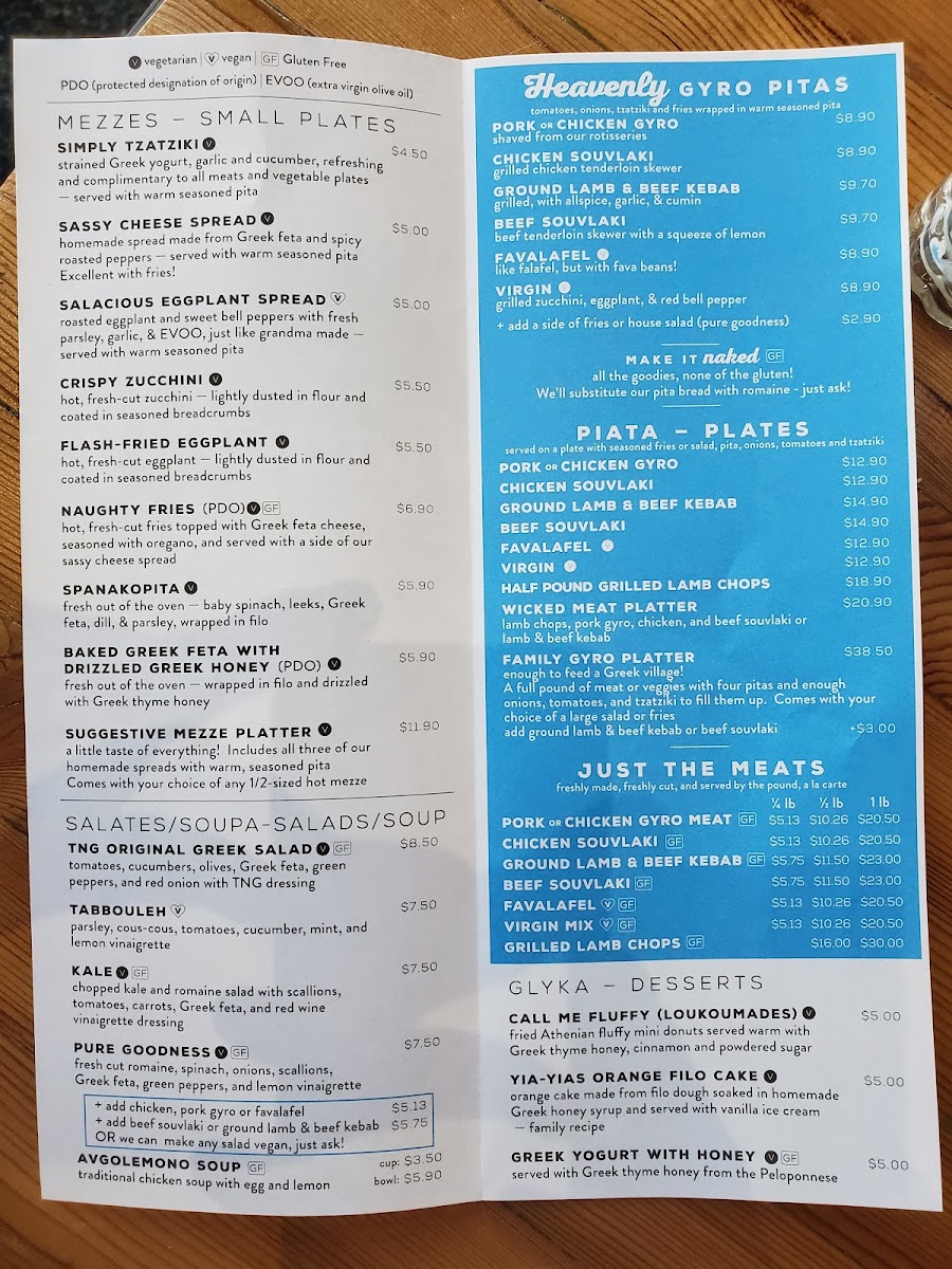 To wash it all down, the restaurant offers Fountain Drinks from the Pepsi machine, Bottle/Can Drinks, and refreshing Craft Lemonade. And if you’re looking for extra flavor, you can pair your meal with a selection of sauces, including Tzatziki, Spicy Tzatziki, and Herb Tahini.